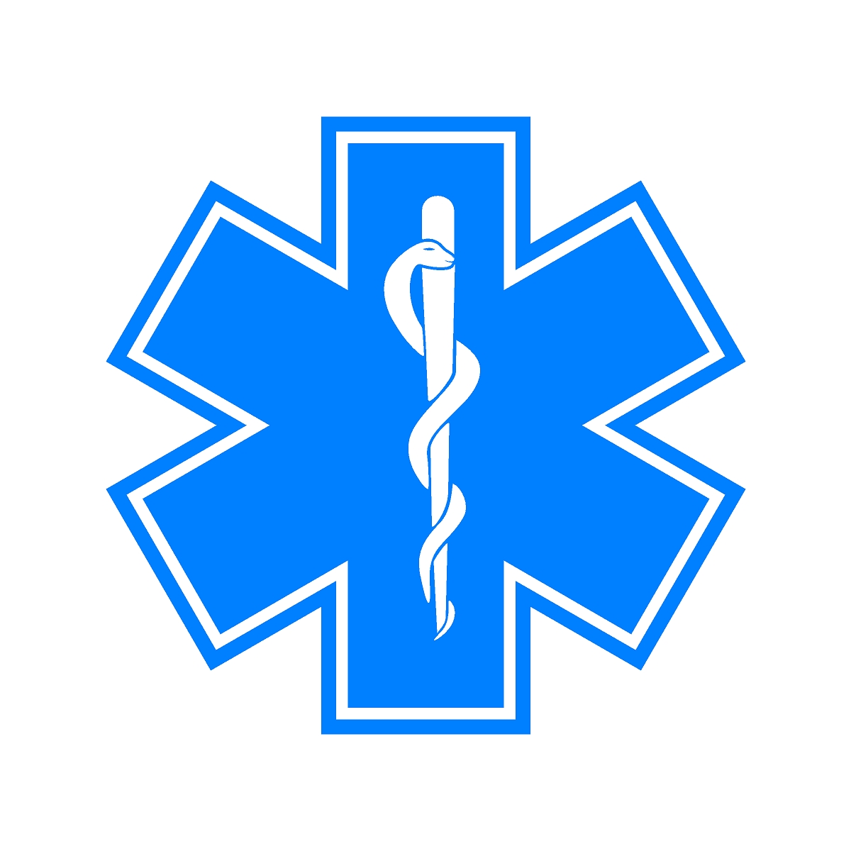 Approximately 10″ x 10″ Star of Life decal printed on 3M 680CR reflective and laminated with 3M 8548, cut to shape.